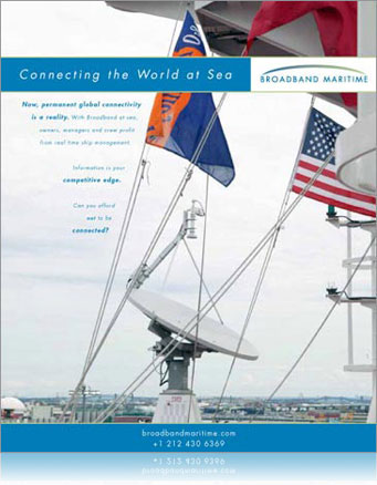 Develop the brand position “Connecting the World at Sea” illustrating the client’s ability to achieve faster, easier and more reliable ship-to-shore communication.